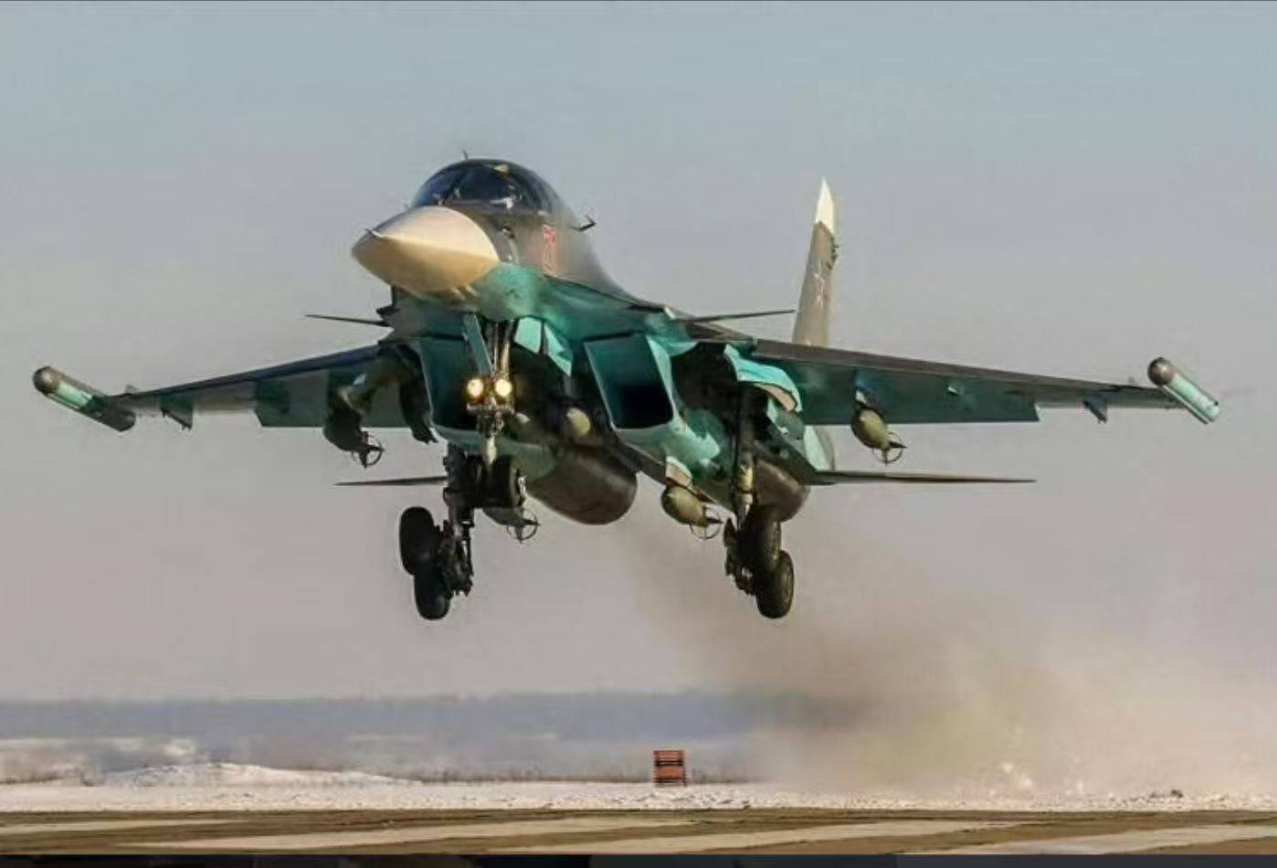 以苏-34前线轰炸机为核心的载机平台,为UMPK的高效投送提供了关键支撑。苏-34凭借强大的载弹量与卓越的航程优势,在战斗中构建起不可替代的投送网络。更重要的是,依托UMPK的远射程优势,苏-34可在俄罗斯境内或乌军防空圈外的安全距离完成投放,显著降低了遭敌方防空武器攻击的风险。不仅如此,苏-34具备快速起降能力,一小时内单机可完成4轮投放,相当于每7.5分钟就有两枚炸弹落地。