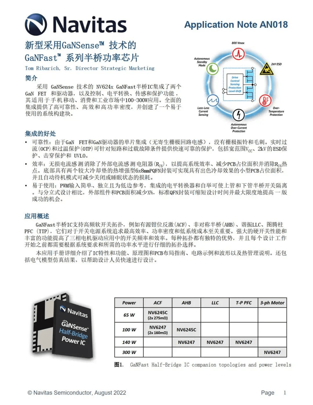 2、纳微半导体发布GaNSense半桥氮化镓功率芯片NV624x应用手册