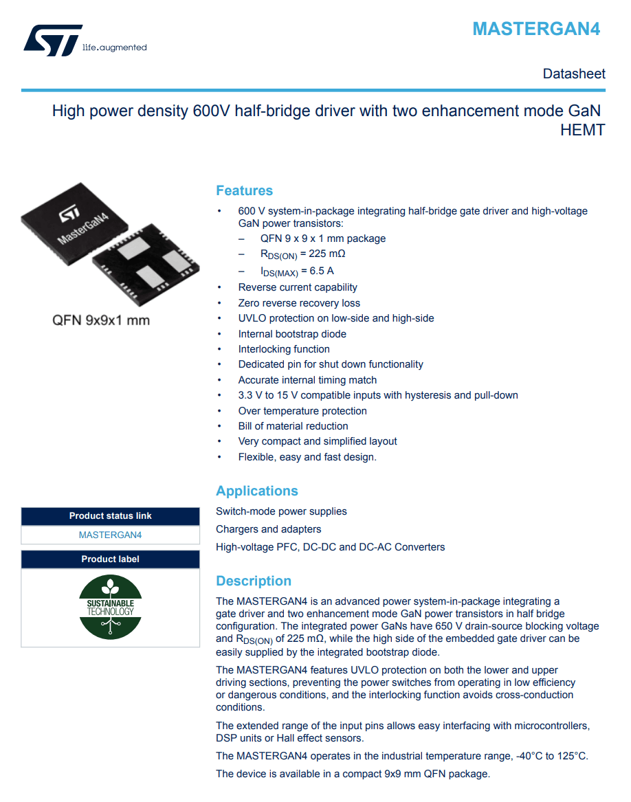 1、ST意法半导体发布GaN半桥器件:内置驱动器和两颗氮化镓