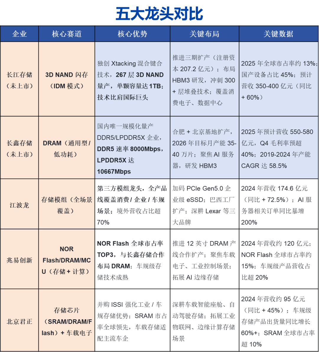 国产厂商长江存储、江波龙、佰维存储聚焦技术架构、细分场景与核心环节,加速实现国产 NAND Flash 突围。