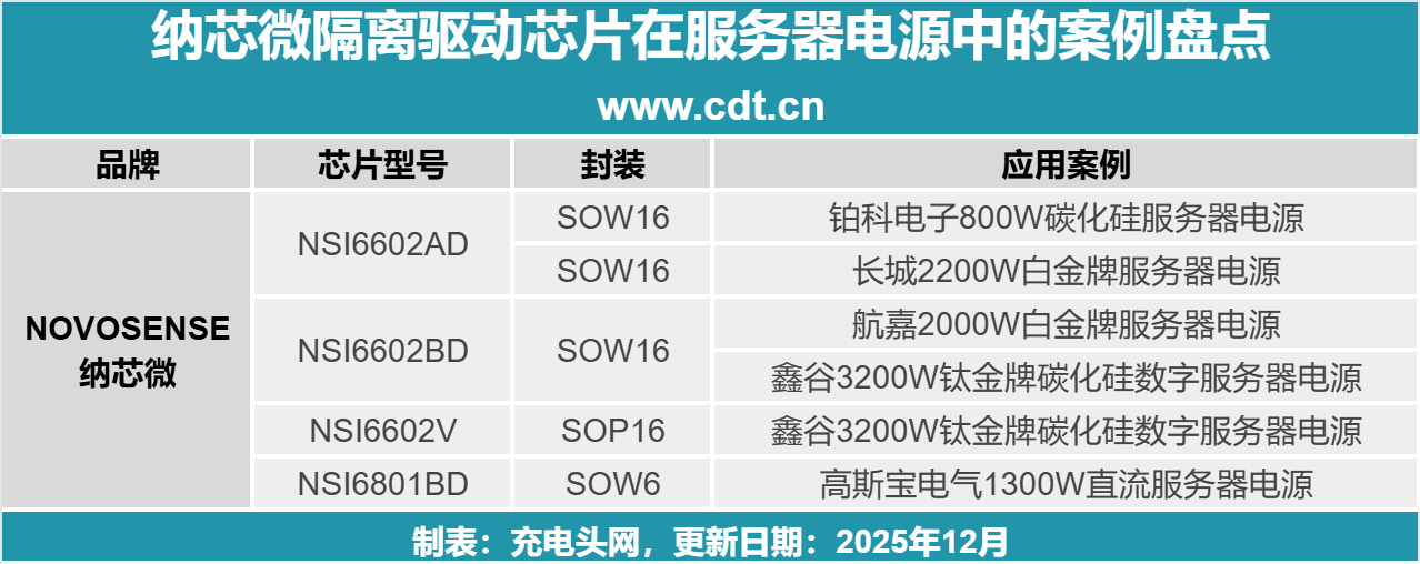 接下来,充电头网将结合拆解与典型方案,对纳芯微隔离驱动芯片在服务器电源中的应用进行系统盘点,为行业读者提供更直观的参考。