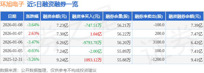 证券之星消息,截至2026年1月8日收盘,环旭电子(601231)报收于28.63元,下跌3.64%,换手率1.88%,成交量42.85万手,成交额12.51亿元。