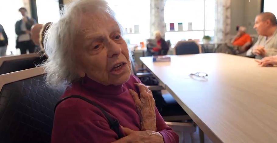 机器小狗“珍妮”全身布满了传感器,能够感知人的抚摸并做出反馈,甚至能听懂语音指令。九十二岁的劳瑞·恩格尔一边抚摸着它,一边露出了久违的笑容。