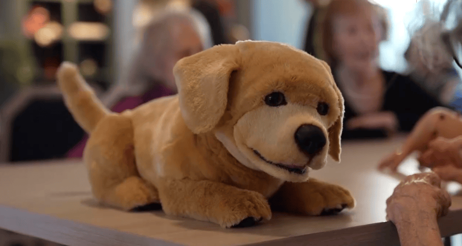如果说数字化身是为了提升效率,那么另一项发明则是为了填补情感空缺。在拉斯维加斯的一家养老院里,一只名为“珍妮”的机器小狗引起了轰动。这只小狗有着金黄色的蓬松绒毛,耷拉着耳朵,黑亮的大眼睛透着机灵劲儿,抱在怀里就像一只真实的拉布拉多幼犬。