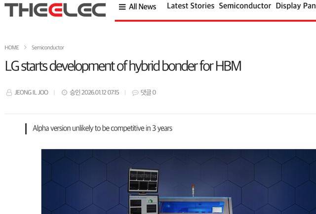 【环球网科技综合报道】1月13日消息,据TheElec报道,LG电子正在开发用于高带宽存储器(HBM)的混合键合堆叠设备(键合机)早期版本。