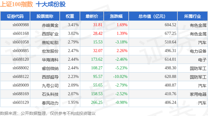 上证100(000132)指数十大成份股详情如下: