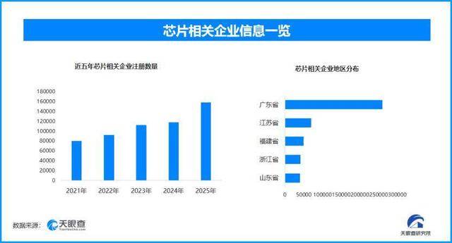 天眼查专业版工商信息数据显示,截至目前我国现存在业、存续状态的芯片相关企业超82.2万家。其中,2025年新增注册相关企业超15.8万余家,从企业注册数量趋势来看,近五年间,芯片相关企业的注册数量呈现出逐年增长的态势,并在2025年达到顶峰。