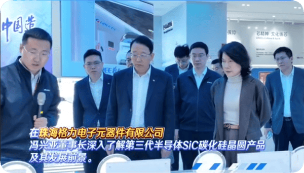 在珠海格力电子元器件有限公司,冯兴亚董事长深入了解第三代半导体SIC碳化硅晶圆产品及其发展前景。