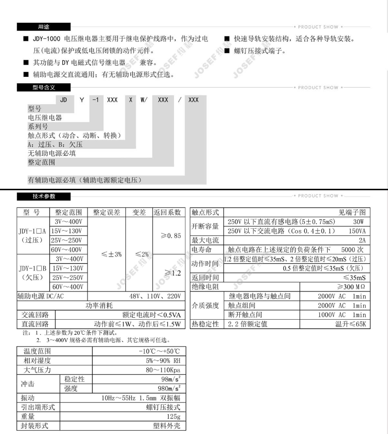 JDY-1002A电压继电器