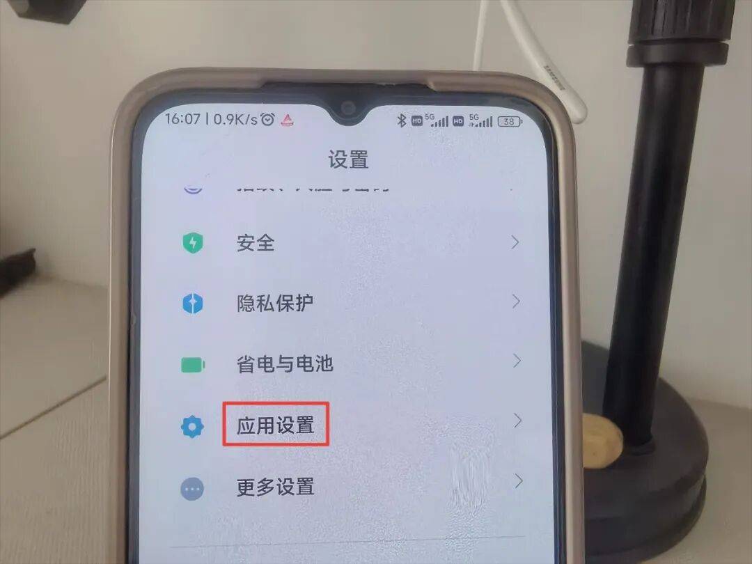 打开手机的设置,然后我们向下滑动。在这里找到“应用设置”的选项并点击进入。