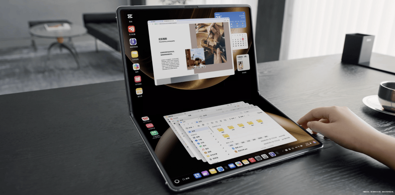 华为MateBook Fold 非凡大师则是高端移动办公新标杆,18英寸折叠屏实现灵活形态切换,展开是超大视野画布,处理报表、审阅合同更高效,折叠后便携度大幅提升,轻松放入公文包。