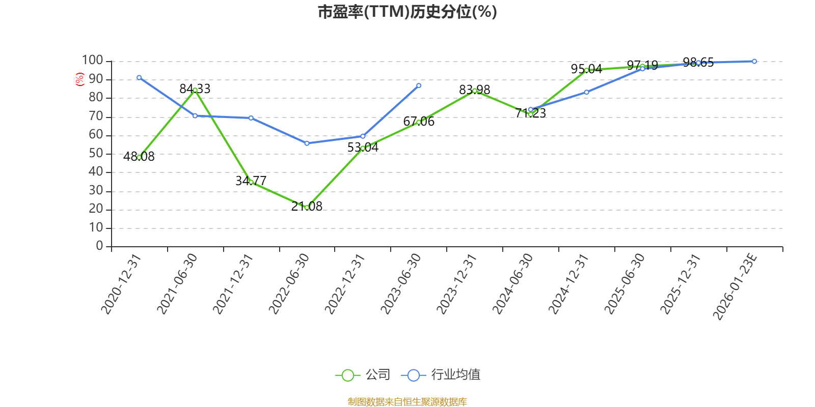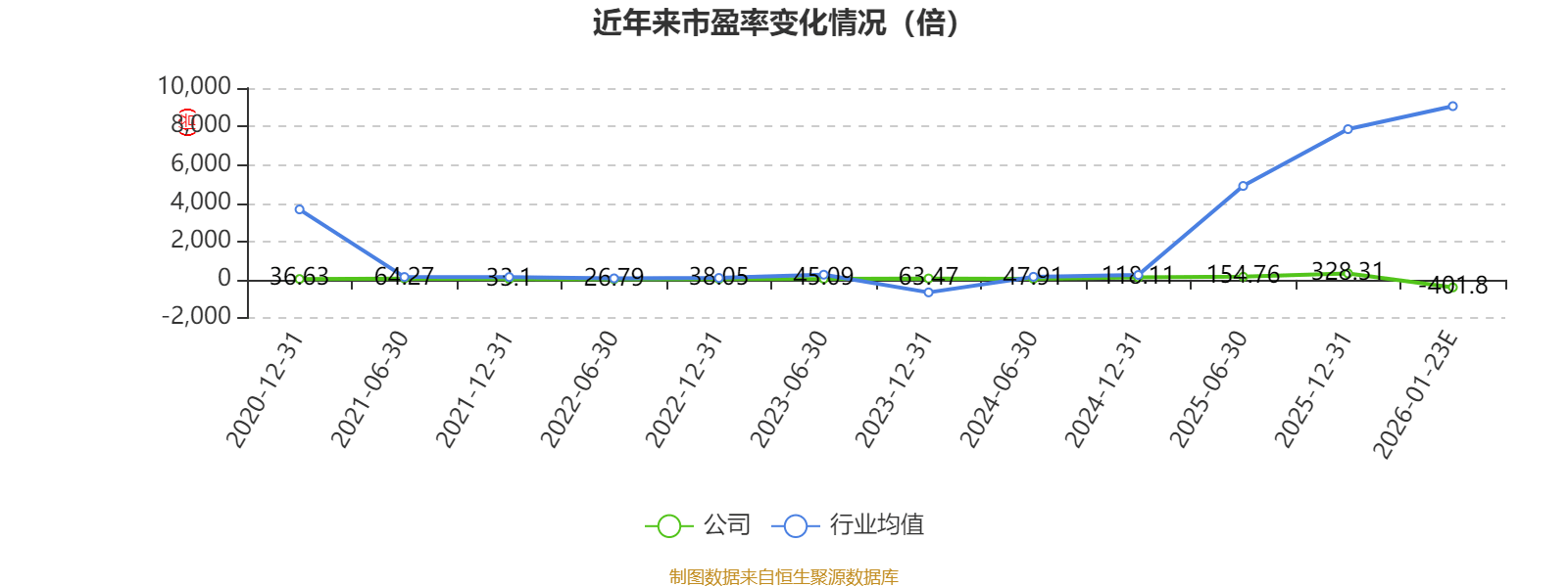 市盈率、市净率为负时,不显示当期分位数,会导致折线图中断。