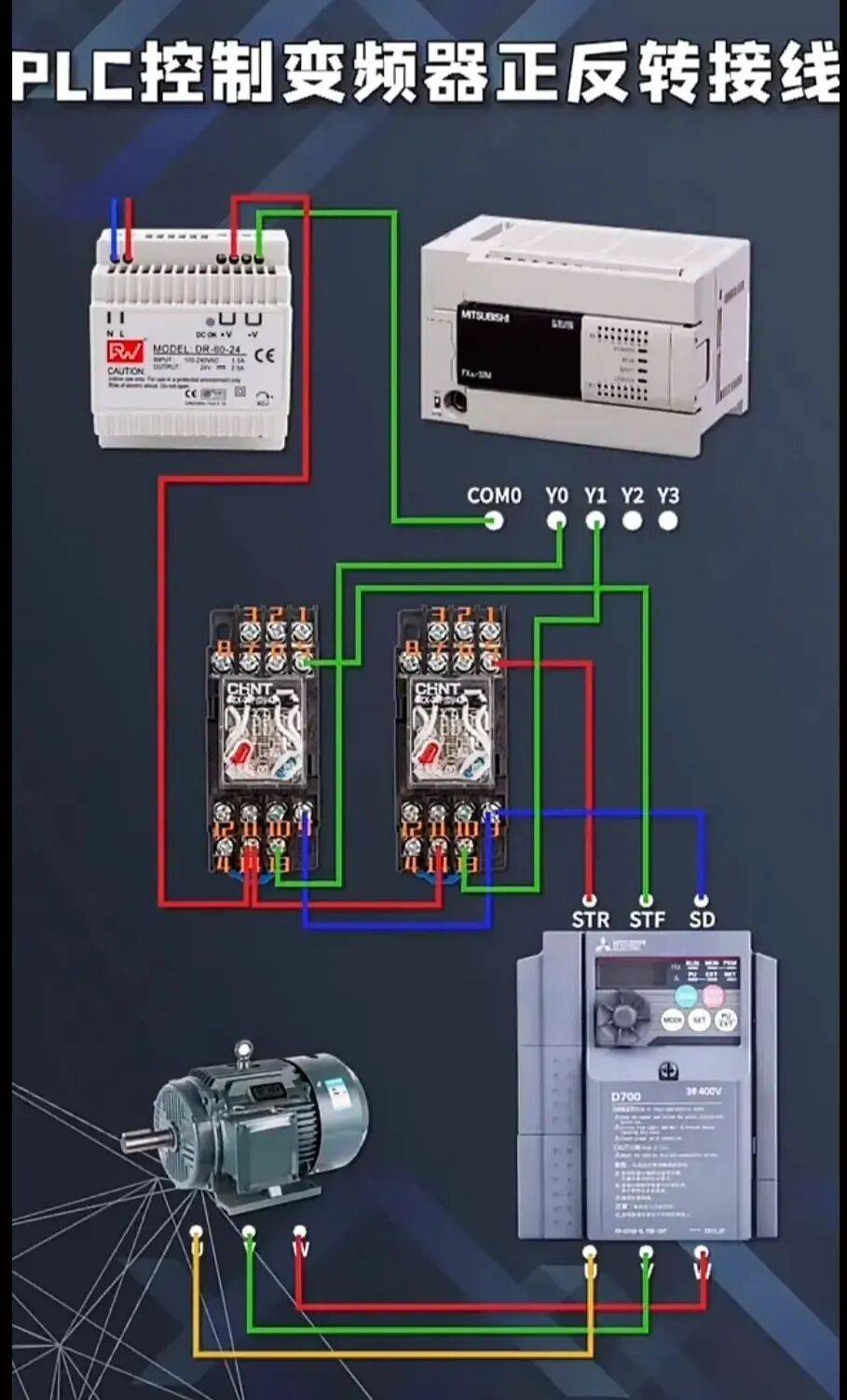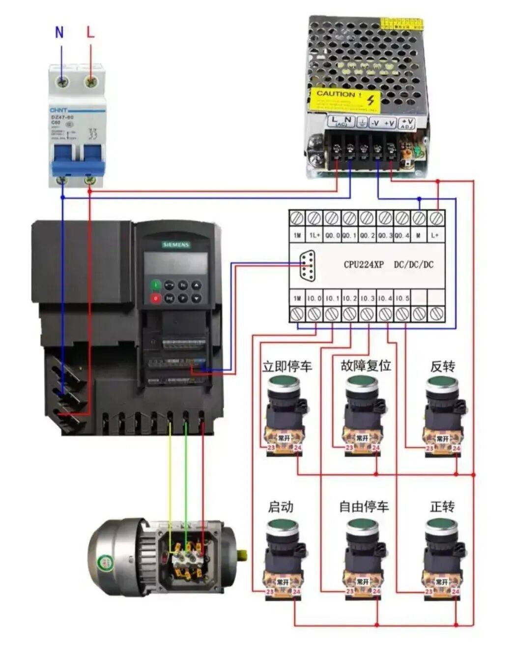 11、PLC控制变频正反转实物彩图接线