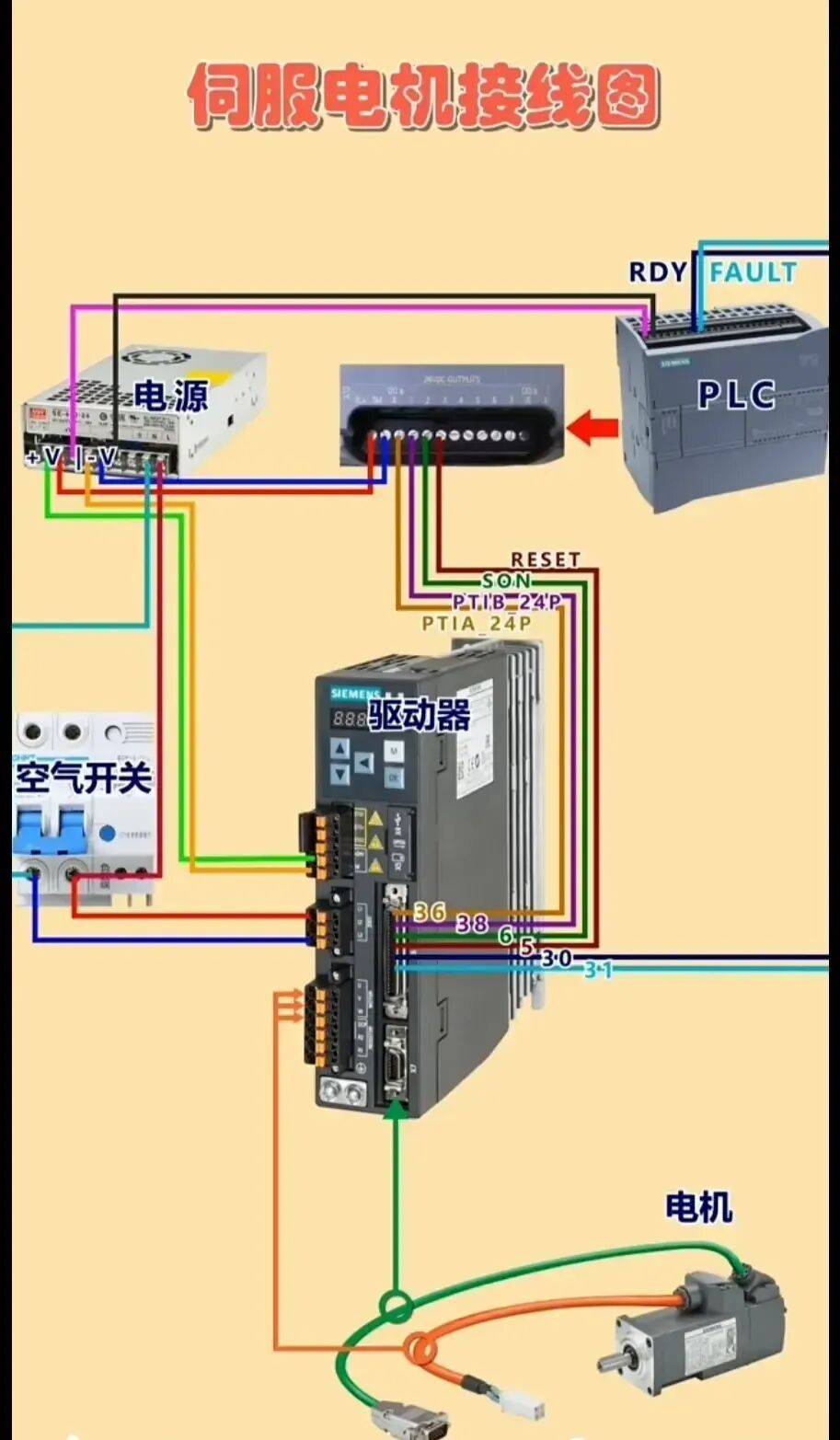 17、伺服电机如何实物彩图接线