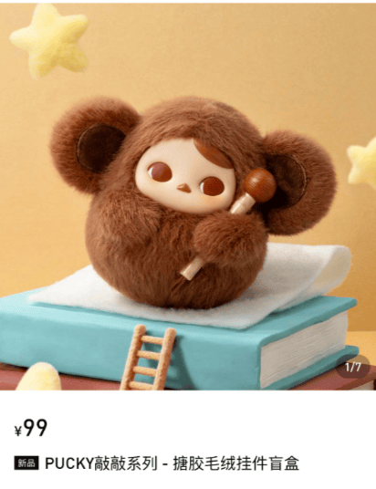 事实上,“电子木鱼”系列所属IP PUCKY(毕奇),并非全新形象,而是泡泡玛特旗下签约艺术家毕奇于2018年创作。2018年4月25日在上海国际潮流玩具展 (STS) 首次亮相了首个潮玩系列 "PUCKY Pool Babies"(毕奇精灵泡泡圈系列)。