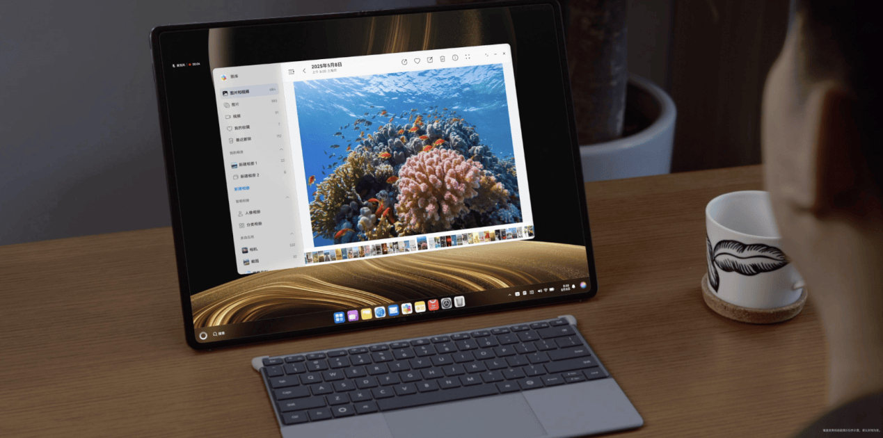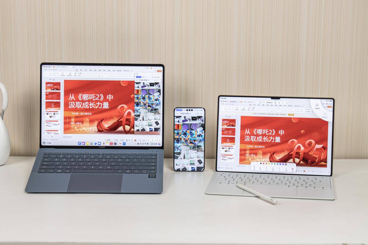 在HarmonyOS 6系统加持下,华为MateBook Pro支持隔空手势传输、键鼠共享等跨设备联动功能。通过“一抓一放”的隔空手势,可快速实现跨设备内容传输,在商务演示、文件交互等场景中,尽显便捷性与专业性,助力提升办公效率。