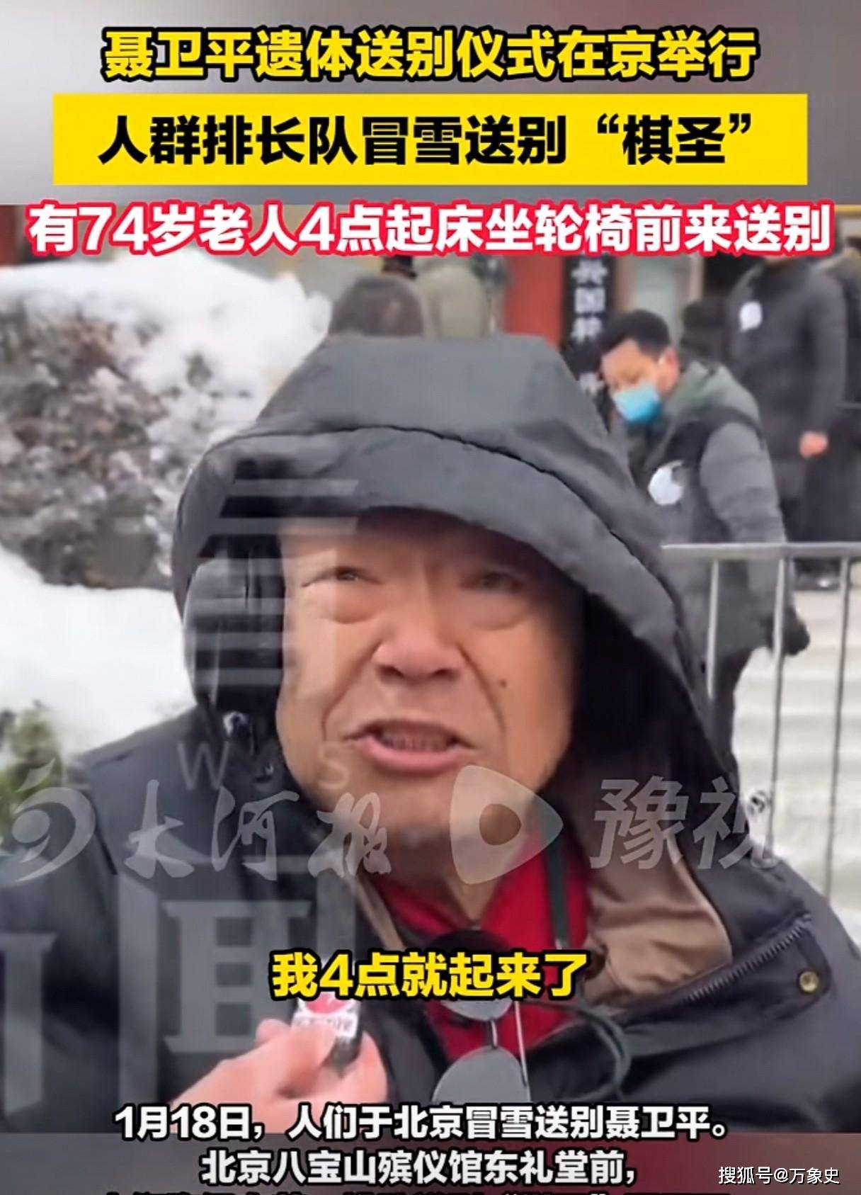 这位老人今年74岁,和聂卫平同龄,为了能够前来相送,早上4点就已经起床。