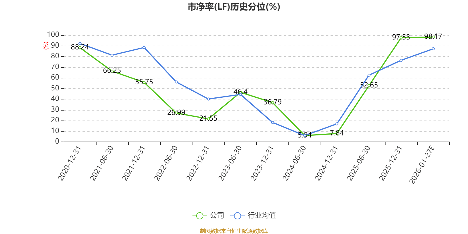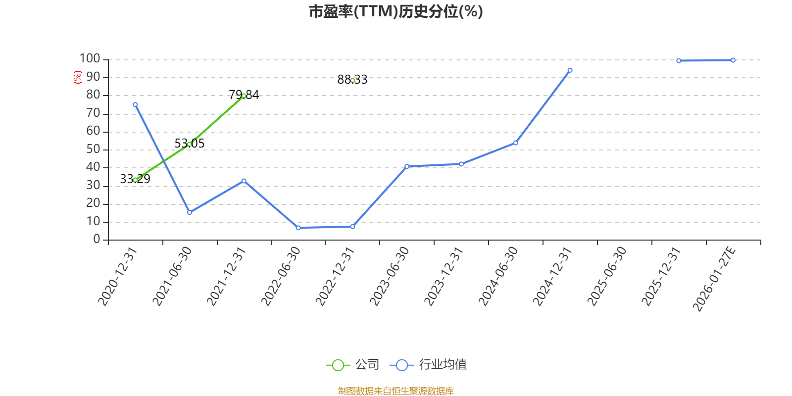 市盈率、市净率为负时,不显示当期分位数,会导致折线图中断。