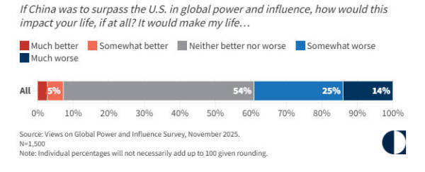 香港《南华早报》1月29日报道称,这项发布于21日的民调,反映出美国公众对中美实力对比的认知发生显著变化——从“美国例外论”转向接受多极世界,甚至对中美潜在权力转移的态度相对平静。