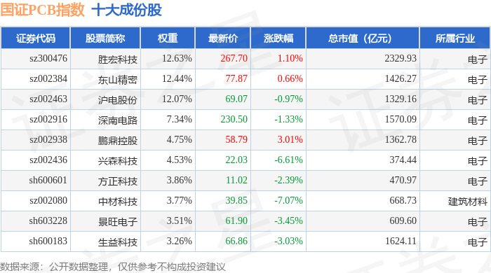 国证PCB(980115)指数十大成份股详情如下: