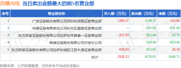 证券之星消息,沪深交易所2026年2月9日公布的交易公开信息显示,民爆光电(301362)因日换手率达到30%的前5只证券登上龙虎榜。此次是近5个交易日内第5次上榜。