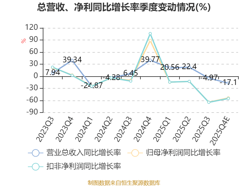2025年面对复杂多变的外部环境和行业周期性波动,公司经营顶压前行,全年实现营业收入213.01亿元,总体保持稳定增长;实现利润总额、归母净利润26.64亿元、21.24亿元,同比下降29.24%、36.69%。防务整体受行业周期波动影响,需求不旺叠加“两高一低可持续”要求,造成防务领域收入同比下降较多;与此同时黄金、铜、白银等贵金属及大宗物料价格持续走高,影响公司盈利水平。此外,税收监管环境趋严以及补缴企业所得税等因素造成公司归母净利润下降较多。