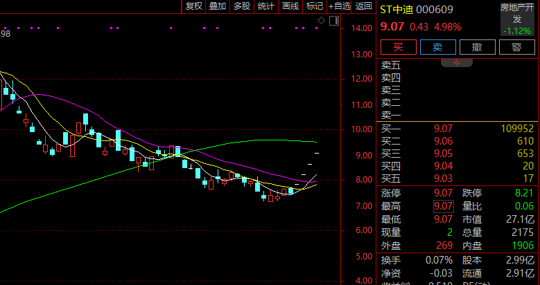 2月10日,ST中迪(000609)股价开盘一字板,至此,公司股价已连续四个交易日一字涨停。2月9日晚,公司发布股票交易异常波动公告称,公司目前没有任何根据深交所《股票上市规则》规定应予以披露而未披露的事项或与该事项有关的筹划、商谈、意向、协议等。