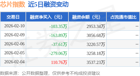 证券之星消息,2月10日,芯片指数(159599)融资买入143.79万元,融资偿还247.13万元,融资净卖出103.35万元,融资余额2953.34万元。