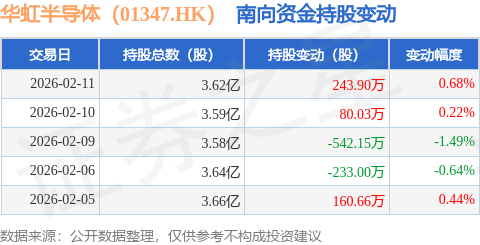 证券之星消息,2月11日南向资金增持243.9万股华虹半导体(01347.HK)。近5个交易日中,获南向资金减持的有2天,累计净减持290.56万股。近20个交易日中,获南向资金减持的有10天,累计净减持199.84万股。截至目前,南向资金持有华虹半导体(01347.HK)3.62亿股,占公司已发行普通股的20.8%。