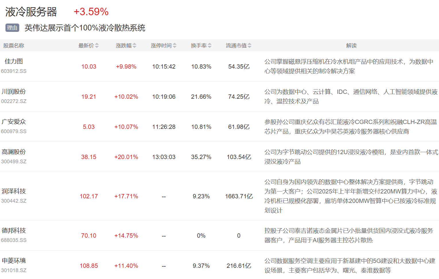 液冷概念今日走强,佳力图、川润股份、广安爱众等多股涨停。