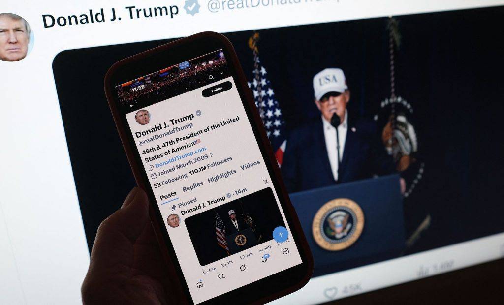 当地时间2026年2月28日,美国,一名民众查看手机社交媒体上显示的美国总统特朗普关于伊朗作战行动的声明。视觉中国 图