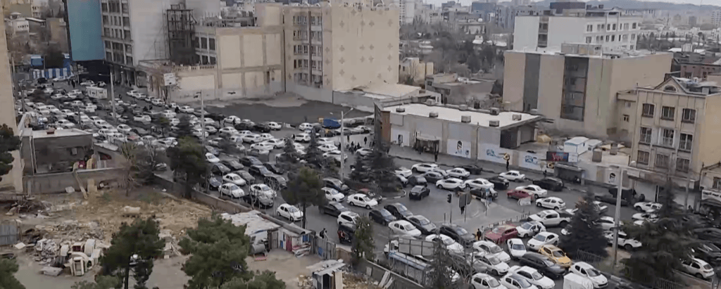 当地时间2026年2月28日,美以对伊朗的军事打击行动发生,首都德黑兰发生全城大堵车。央视新闻视频截图