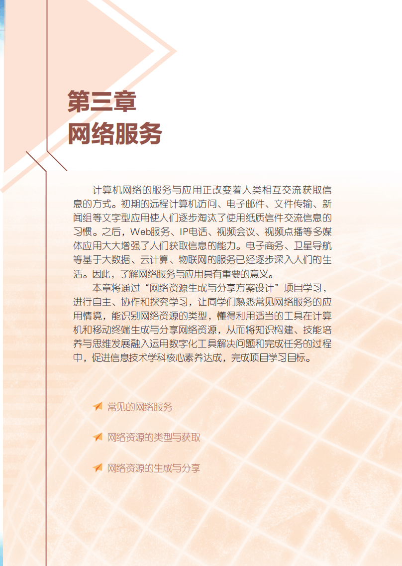 为了让大家做好课前预习和巩固复习,下面为大家准备了2026粤教版高中信息技术选择性必修二《网络基础》电子课本,大家可以在线浏览图片版,也可以下载高清PDF版以备不时之需,希望可以帮助到大家。