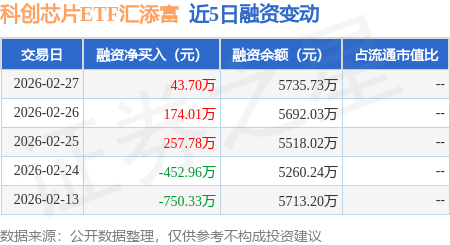 证券之星消息,2月27日,科创芯片ETF汇添富(588750)融资买入563.78万元,融资偿还520.08万元,融资净买入43.7万元,融资余额5735.73万元,近3个交易日已连续净买入累计475.49万元。