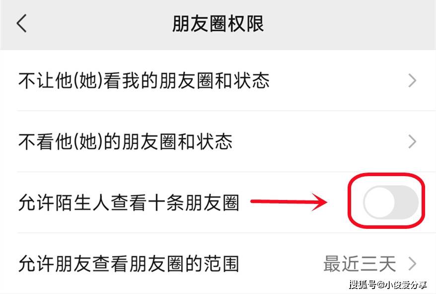 第三个,允许陌生人查看十条朋友圈