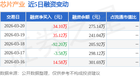 证券之星消息,3月20日,芯片产业(159310)融资买入83.3万元,融资偿还49.19万元,融资净买入34.1万元,融资余额275.14万元。
