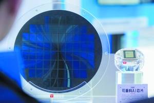 在中关村展示中心常设展上,清微智能公司展示可重构AI芯片。