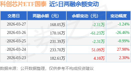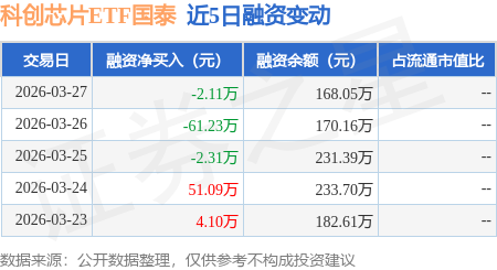 证券之星消息,3月27日,科创芯片ETF国泰(589100)融资买入81.28万元,融资偿还83.39万元,融资净卖出2.11万元,融资余额168.05万元。