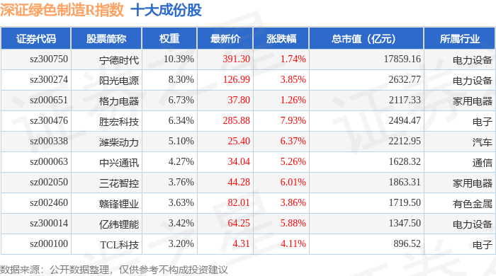 深证绿色制造R(470069)指数十大成份股详情如下: