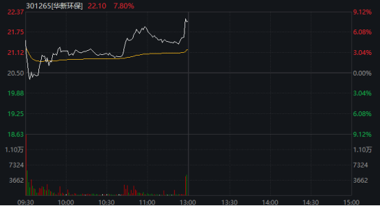 华新环保盘中直线拉升,涨幅一度扩大至8%以上,与此同时成交量快速放大。
