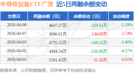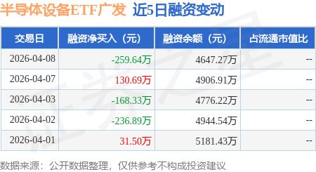 证券之星消息,4月8日,半导体设备ETF广发(560780)融资买入481.44万元,融资偿还741.07万元,融资净卖出259.64万元,融资余额4647.27万元。