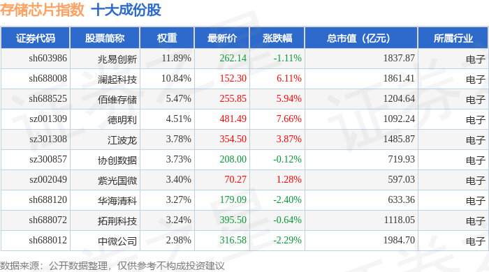 存储芯片(980138)指数十大成份股详情如下: