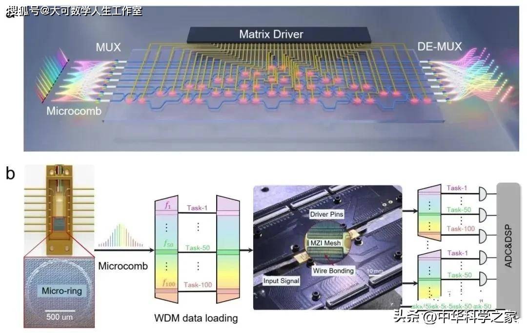 - 他们发明了一种新的光计算架构,核心是特殊的“光源”(孤子微梳)和精密的“光计算单元”网络(MZI网络)。