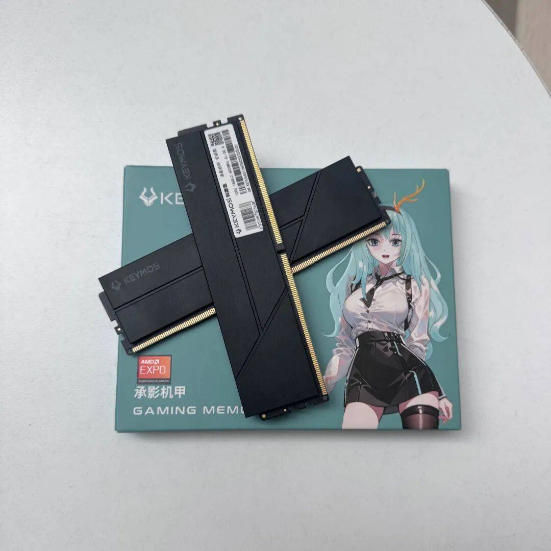 我买的这款是海力士Adie的6000MHz的承影机甲。包装非常有二次元风格,非常迎合现代的小年轻喜好,这款内存条有白兰玉色搭配白色的海景房非常漂亮,由于我的机箱是不带背板走线的,自然无脑选黑色就完事了。