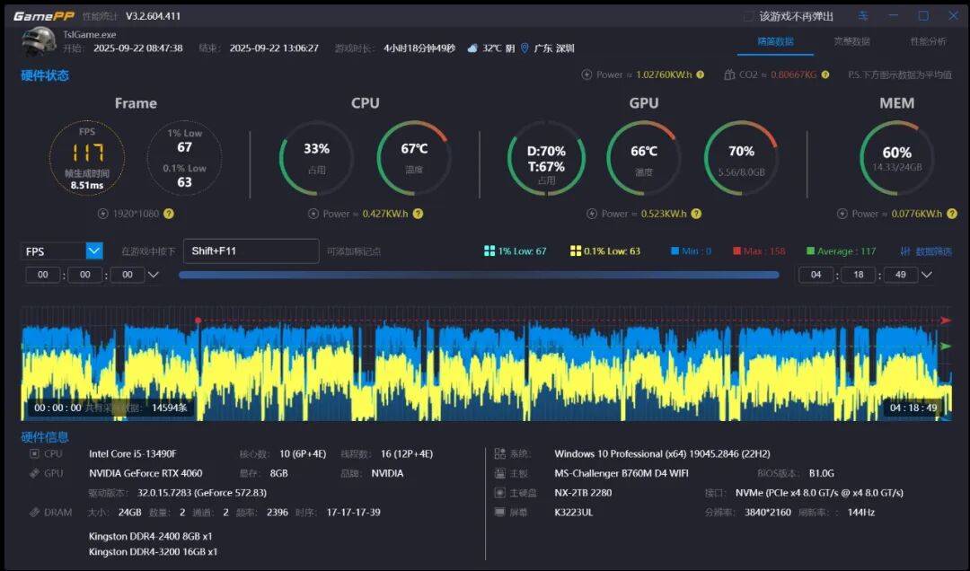 本人一直绝地求生大逃杀PUBG游戏爱好者,属于那种有才有爱玩。去年把老显卡GTX1650换成了RTX4060,游戏帧数从100帧以内升级到了140帧左右,CPU是13490F,铭瑄的B760,金士顿的D4内存条3200MHz都无法保持,只能默频2666运行。绝地求生是一款非常吃内存频率和容量的游戏,遂入手了科摩思的DDR5内存条.