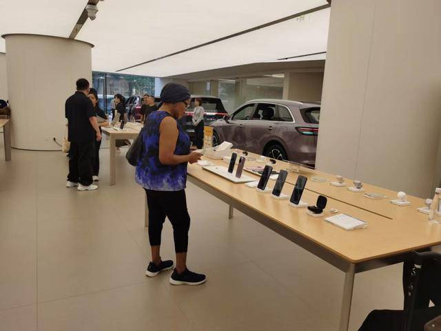 10月5日中午,记者来到地处正大广场一楼的华为旗舰店。这里正好几名老外正在挑选新上市不久的华为三折叠手机和折叠电脑,一打听,他们来自西班牙。不远处,还有一位包着头巾,黝黑皮肤的中年女老外正在试戴华为耳机。