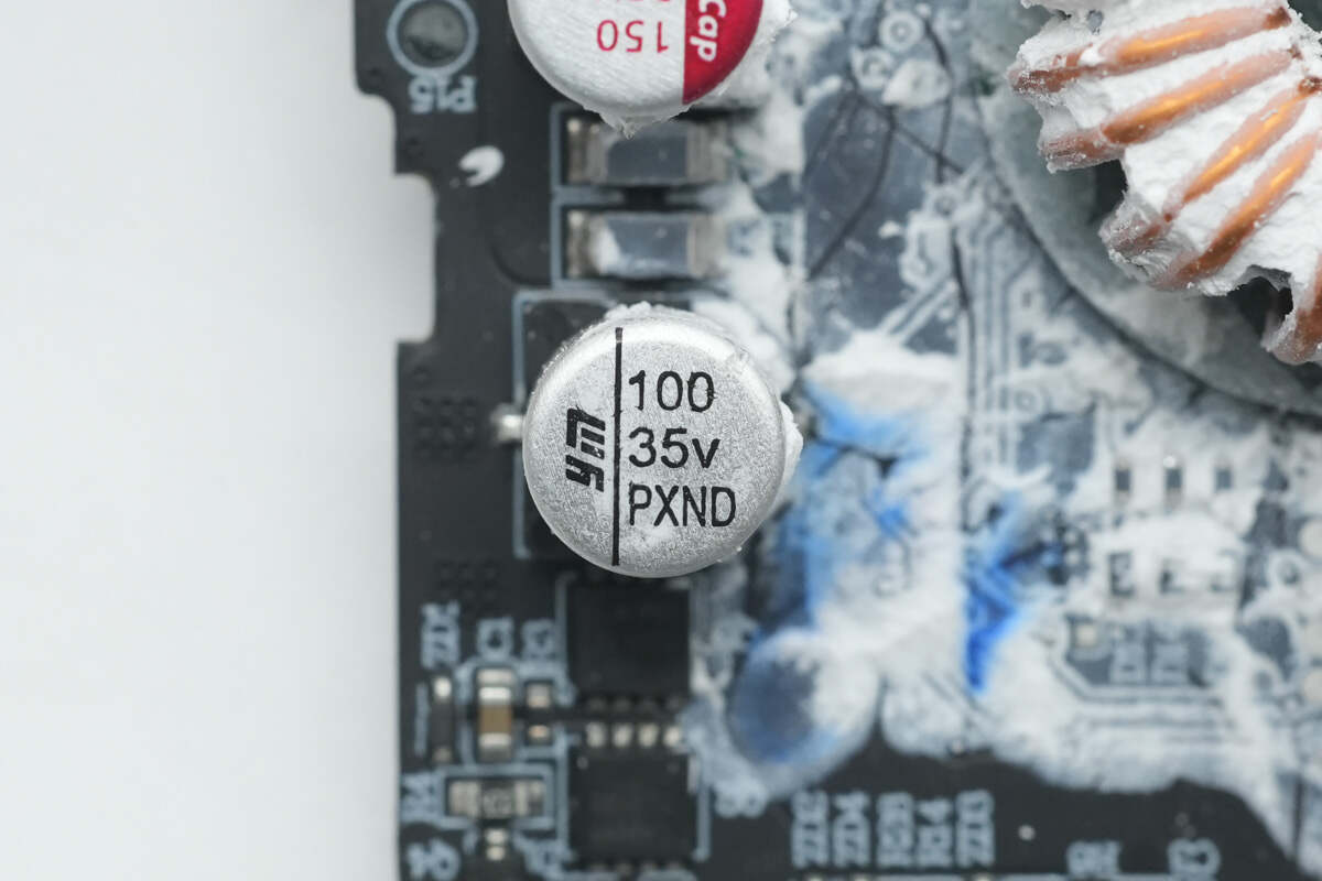 内部PCB板以及电芯上大量填充白胶进行加固保护。