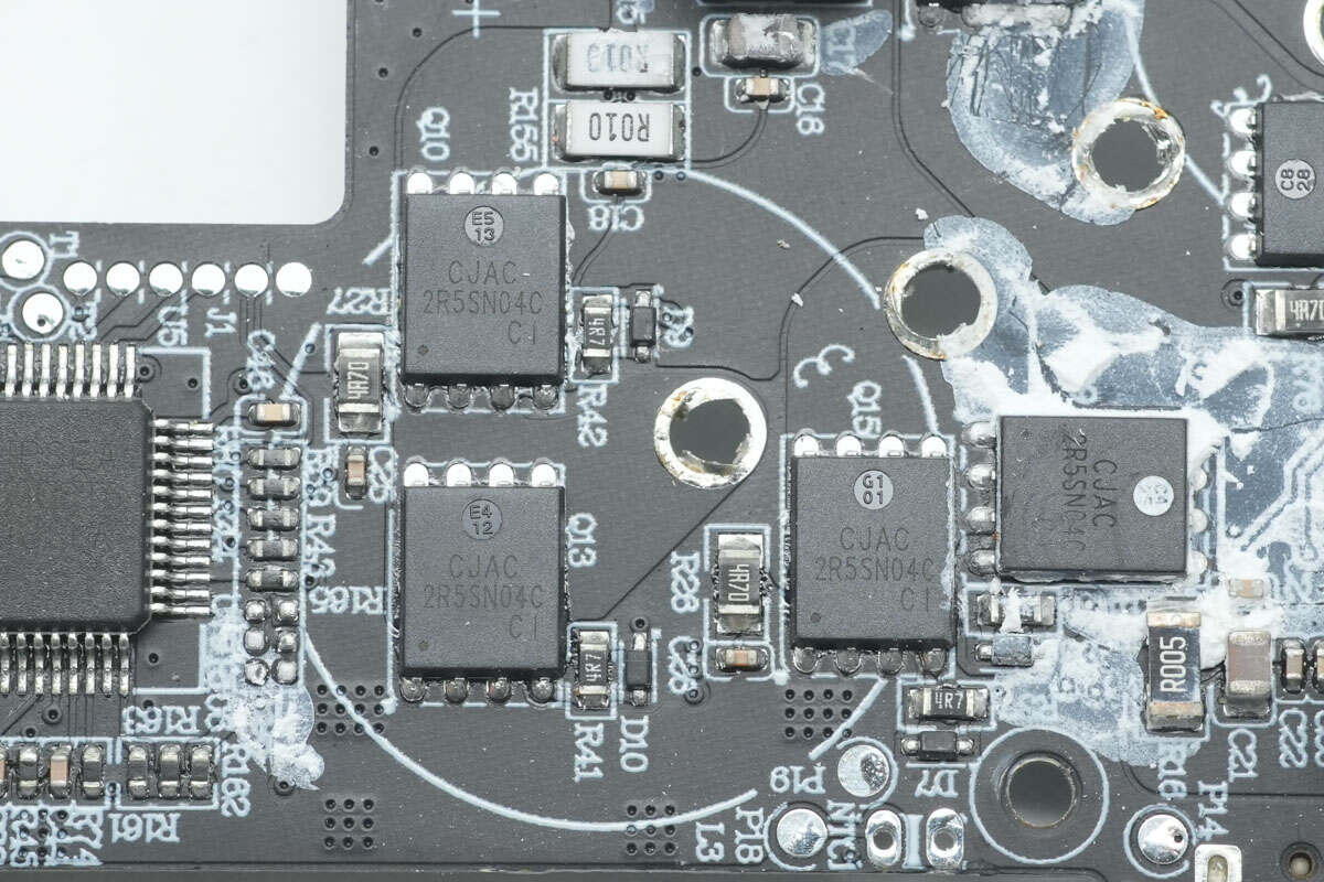 拆掉电感,底部四颗同步升降压开关管来自长晶科技,型号CJAC2R5SN04C,NMOS管,耐压40V,导阻2mΩ,采用PDFNWB5*6-8L封装。