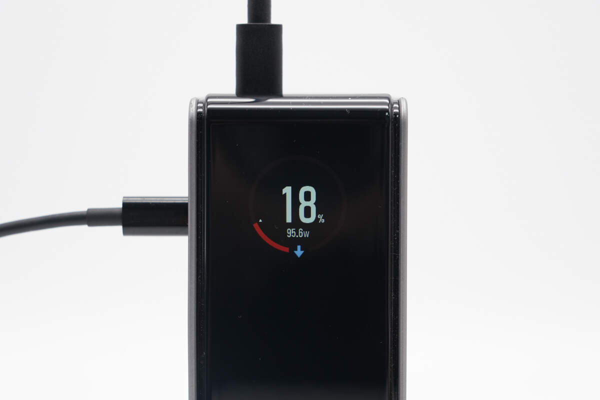 此外充电宝也搭载16位色深TFT彩色屏显以及25000mAh电池组,在产品的实用可玩性以及续航方面都没有缩水,满足笔电、平板、手机等设备快充需求。下面我们就一起来看看这款移动电源的具体设计。
