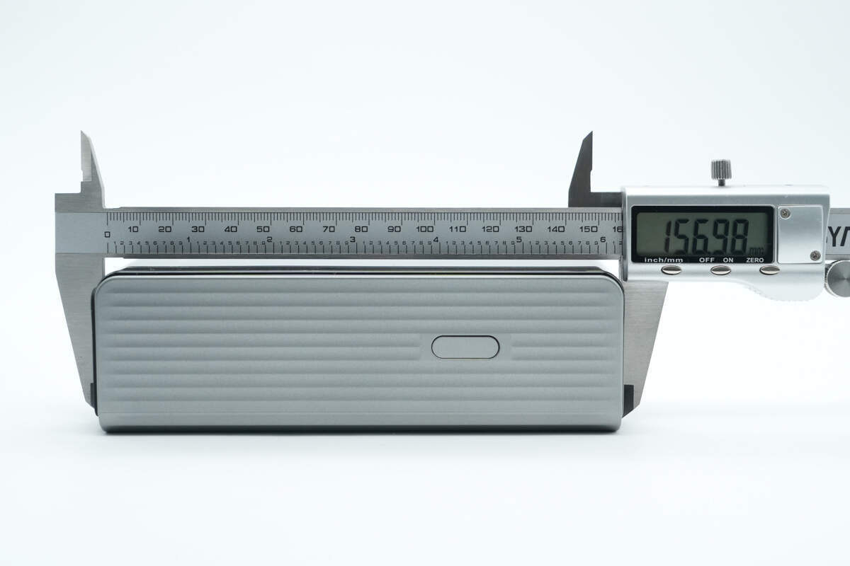 实测移动电源机身长度为156.98mm。